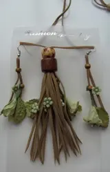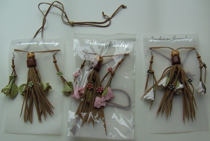 KETTING MET OORBELLEN SUEDE EN BLOEMEN (14) NIEUW