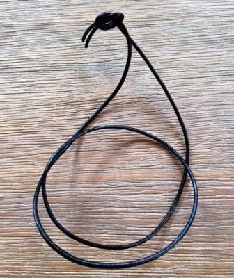 Dit karaktervolle, zwarte, ronde koord van hoogwaardig rundleer is circa 64 cm. lang.