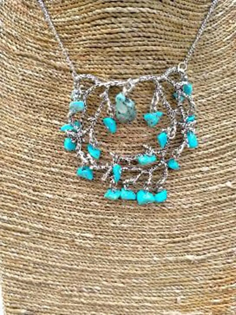 Een super leuke en aparte met de hand gemaakte ketting met een turqoise steentje gemaakt als prikkeldraad
