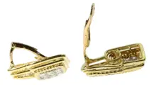 In each of these French Boucheron Estate earclips from 1950, two 18K yellow gold squares with 24 brilliant cut diamonds scattered over both fields of platinum merge into one another. A millegrain rim unfolds into a double terrace to enframe the exuberant shimmer of the total of 3.60 carat weight in diamonds. These stunning jewels could be your highlight of experiencing true Parisian Fifties sophistication.