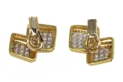 In each of these French Boucheron Estate earclips from 1950, two 18K yellow gold squares with 24 brilliant cut diamonds scattered over both fields of platinum merge into one another. A millegrain rim unfolds into a double terrace to enframe the exuberant shimmer of the total of 3.60 carat weight in diamonds. These stunning jewels could be your highlight of experiencing true Parisian Fifties sophistication.