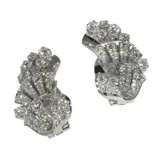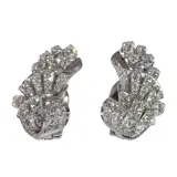 A stunning pair of vintage 1950s platinum diamond earclips, embodying the elegance of the Fifties. These exquisite earclips feature 60 brilliant cut diamonds with an estimated total weight of 3.30 carats. Crafted from platinum, they reflect the timeless charm and intricate craftsmanship of the era. The design, inspired by the Art Deco period, seamlessly blends classic and modern elements, making it a captivating addition to any collection. An intriguing detail is their mirrored design, enhancing the natural contours of the head with a graceful frame. This piece, in very good condition, exemplifies the sophisticated style of the mid-twentieth century, perfect for those who appreciate the beauty of vintage jewellery.