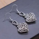 Deze speels opengewerkte oorbellen zijn circa 31X19X9mm. groot. Ze zijn gemaakt van Tibetaans Zilver. Dit is een nikkelvrije legering van verschillende metalen met een laag gehalte zilver. Het materiaal gedraagt zich wel als zilver; het glimt en vertoont dezelfde vorm van oxidatie als zilver. Door het met een zachte doek te poetsen, gaat het prachtig glanzen.