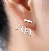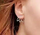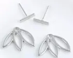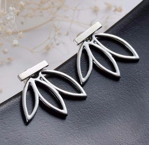 Je draagt deze verzilverde trendy oorbellen met het staafje aan de voorkant van je oor en de lotusbloem aan de achterkant. Het staafje is circa 1 cm breed en de lotusbloem 2 cm.