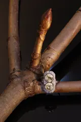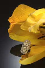 Hailing from the Netherlands, this Art Deco engagement or anniversary ring captures the essence of the 1930s—elegant, functional, yet unapologetically decorative. Crafted in 18K white gold, its abstract, geometric form reflects the period's zest for modernity, a time when the world was dancing to the rhythm of the Roaring Twenties. Adorned with two old mine brilliant cut diamonds and 24 single cuts totalling approximately 2.70 carats, it resonates with the celebratory air of an era that still whispers its stories through such timeless pieces. Marked with a master's touch, it bears hallmarks that ground it firmly in its Art Deco heritage, a treasure with stories etched in its very metal.