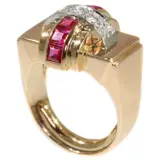 Een prachtige retro cocktail ring van goud met diamanten en robijn