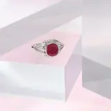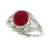 A platinum French Art Deco treasure, circa 1920, holds a bewitching dance of light and shadow with a central 3.19ct natural Burmese ruby, embraced by 30 old brilliant and single-cut diamonds. With origins in France, this ring is a seamless blend between the Art Deco and the Belle Époque periods, capturing the essence of early 20th-century glamour. A celebration of love’s eternity, perfect for an engagement or an anniversary, it is a piece of history awaiting its continuation in a new chapter.