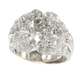 Evoking the refined aesthetic of the 1950s, this distinguished platinum ring, presumably of Belgian craftsmanship, showcases a splendid assembly of 43 diamonds, collectively weighing about 3.44 carats. It stands in sublime condition, a sparkling homage to the period's fashion and an ode to its poetic culture. Serving not just as a jewel but a piece of history, it carries the timeless splendour of the diamond, April's treasured birthstone.