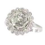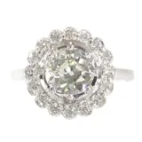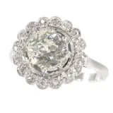 An elegant Art Deco engagement ring from around 1920, masterfully shaped in platinum, encapsulates the sophistication of its time with a harmony of geometric aesthetics inherent to the movement. This Belgian jewel features an assemblage of seventeen old European and mine cut diamonds, culminating in an approximate total weight of 1.67 carats, a silent ode to the depth of commitment they symbolise. It is a timeless testament to love, with each diamond reflecting a story, making it an heirloom piece that transcends the mere passage of time and celebrates April's birthstone.