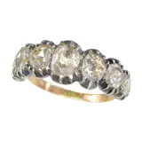 Immerse yourself in the thrill that jewellery experts feel as they unravel the mysteries of an antique's provenance, just as with this ring, hailing from the cusp of the Georgian era, circa 1820, believed to be of Southern Netherlands origin. Crafted from 18k red gold and silver, and set with seven rose cut diamonds, their beauty enhanced by a foil setting, a nearly forgotten craft. Beyond its aesthetic allure, the ring's excellent condition after more than two centuries is a marvel, evoking both admiration and wonder. Holding this ring is like holding a portal to the past, each facet and sparkle hinting at untold stories of love, triumph, and timeless elegance. If only it could speak, imagine the mesmerising tales it would share. Imagine the privilege of wearing such a storied jewel, a beacon of the past's unmatched elegance.