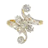 A perfect example of the Belle Époque elegance, this circa 1910 engagement ring beautifully blends romantic charm with luxury. Crafted from 18K yellow gold and platinum, it showcases five old brilliant cut diamonds, complemented by ten rose cut diamonds. This ring captures the essence of an era known for its lavish lifestyles and artistic achievements. It’s more than a piece of jewellery; it's a token of enduring love and a window into a time where extravagance and style were celebrated, making it a timeless treasure for any collection.