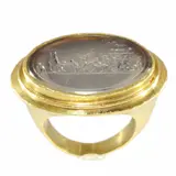 A classy 18th Century ring with an image that, once you understand what you're looking at, makes you giggle. The image is known as "The triumph of Priapus" and we even found some 18th century drawings with this scene belonging to The British Museum (see pictures). As far as we have been able to determine, only a few of these rings with this scenery are known to exist. We were lucky enough to find a very interesting thesis from Raimon Graells i Fabregat (2011) in where he dives fully into the history of this ring (more about this further in this text).