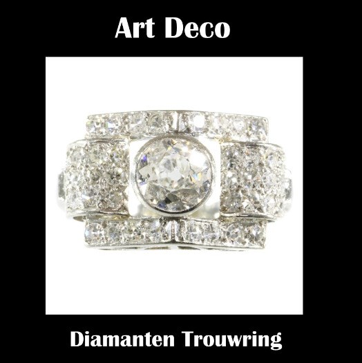 In onze winkel kunt u deze prachtige Art Deco platina trouwring eens rustig bekijken en passen. U kunt ook de rest van onze collectie sieraden uit platina, goud, zilver en wit goud bekijken.