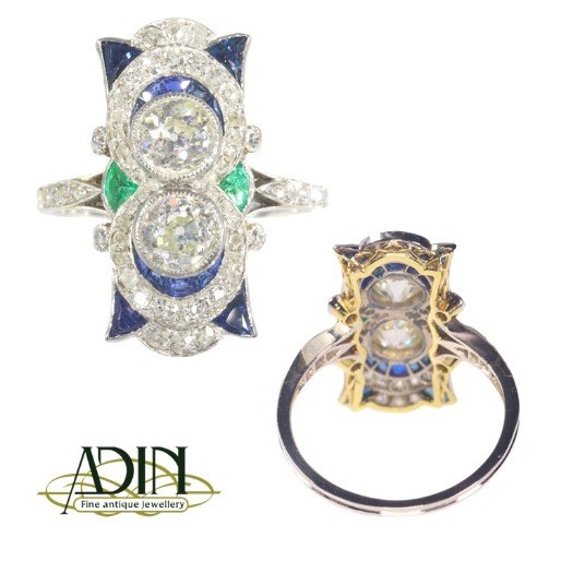 Adin heeft een grote collectie vintage verlovingsringen en andere juwelen met saffier, robijn, opaal, smaragd, diamant en maansteen.