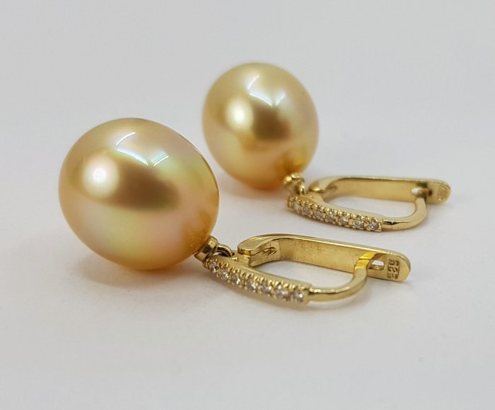 Geproduceerd door de goudlipige Pinctada Maxima-oester in de warme wateren van Indonesië, hebben deze parels een natuurlijke prachtige diepgouden kleur en zien ze er prachtig uit met het gele goud en de diamanten.
