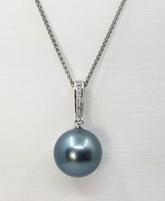Deze parel komt uit de tropische lagunes van Frans-Polynesië en is geselecteerd vanwege zijn mooie formaat, natuurlijke magnifieke groene kleur en luxueuze heldere glans.