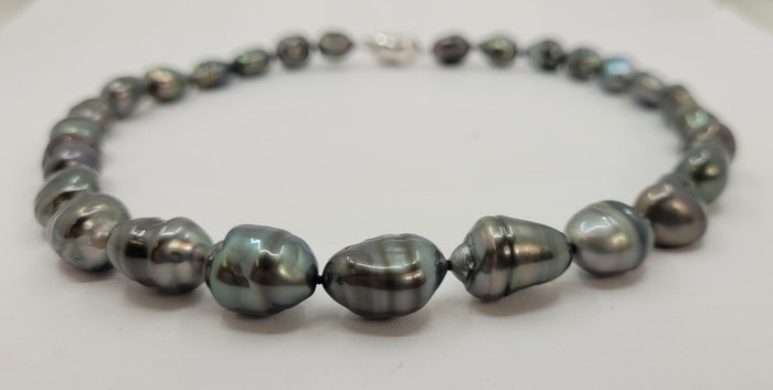 De parels zijn in grootte gegradueerd tussen 11x13mm diameter, hebben een uitstekende scherpe glans met lichte groei-eigenschappen op het oppervlak die niets afdoen aan de elegantie van de ketting.