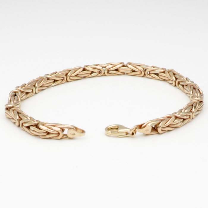 Geelgouden koning schakel armband, de armband heeft een schakel breedte van ca. 5 mm.