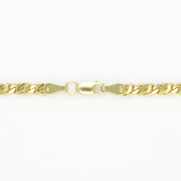 Geelgouden arendsoogschakel collier met een schakelbreedte van ca. 4 mm.