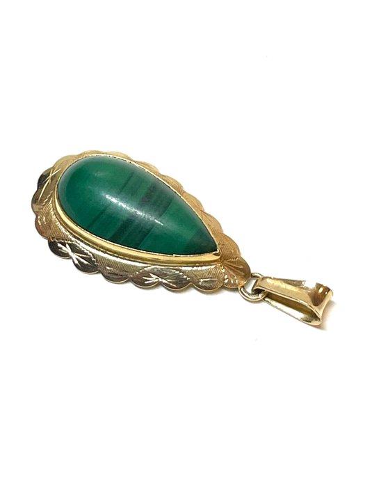 14 karaat gouden hanger gezet met een malachiet