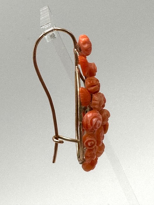"bladeren en bloemen" oorbellen in met de hand gegraveerd mediterraan koraal met bloemmotieven elk stuk is mobiel en is gemonteerd in 14kt goud