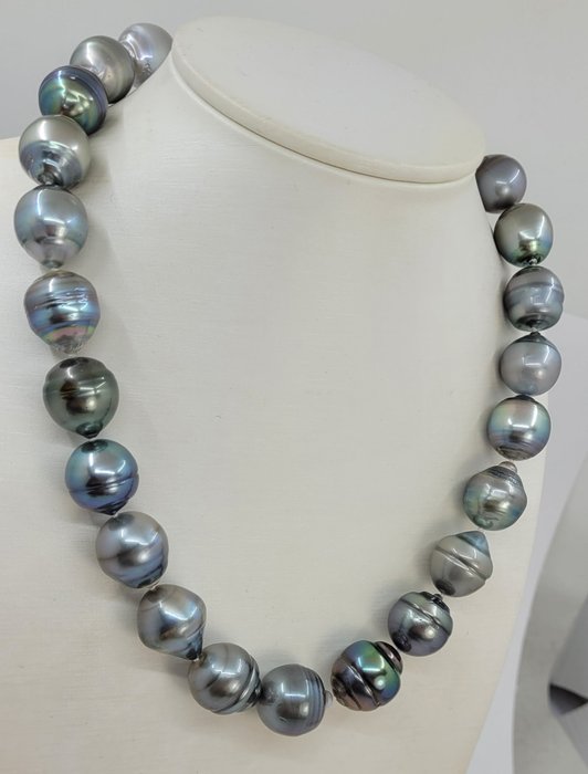 Een luxe parelketting, gemaakt met enorme barokke Tahiti-parels, en afgewerkt met een veilige massief zilveren sluiting.