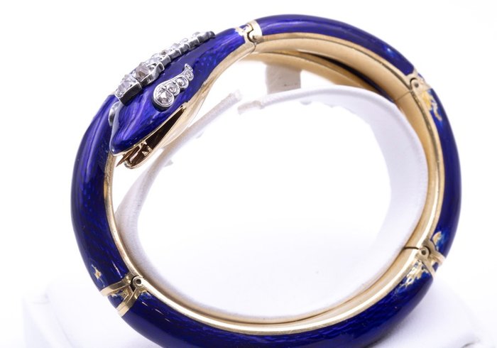 18kt gouden armband met blauw emaille. gearticuleerde sluiting