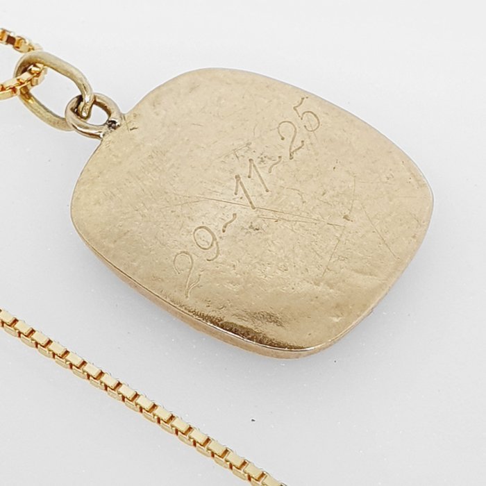 Nieuwe Venetiaanse ketting, met gebruikte hanger met merktekens en gravure, met 2.37g, waarvan 1.17g. is de horoscoop van steenbok in onyx