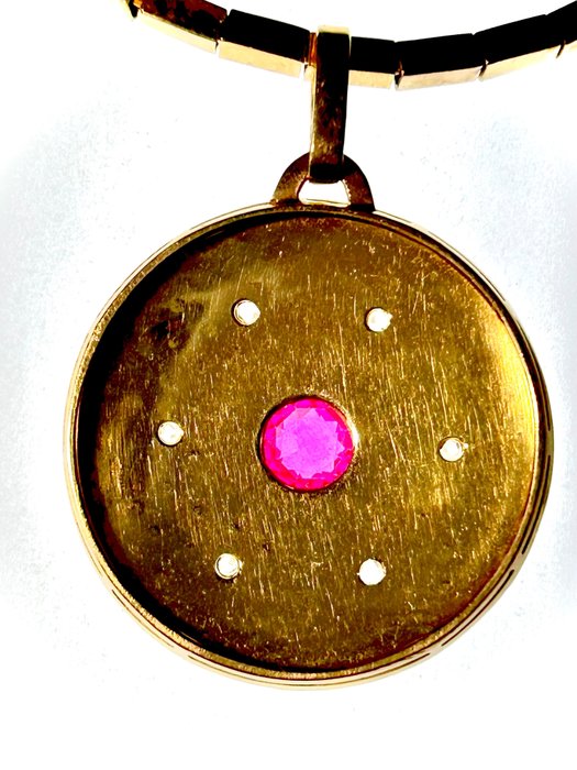 18 karaat Geel goud - Collier met hanger Robijn - Diamanten