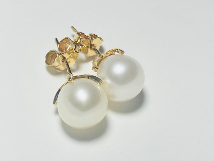 Gouden oorbellen met gekweekte zoutwaterparel