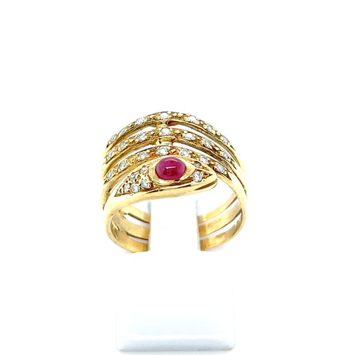 • 18K 750 geelgouden robijn diamanten slangenring - (getest en gegarandeerd)