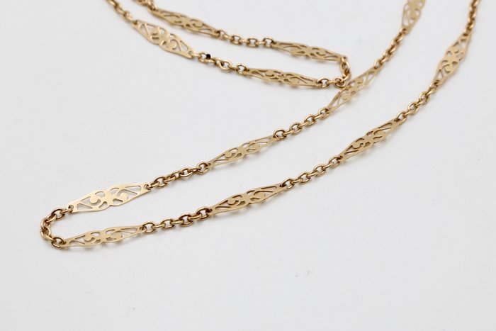 Ketting in vintage stijl van 14 kt geelgoud. De shirts zijn voorzien van een "diamant" motiefversiering