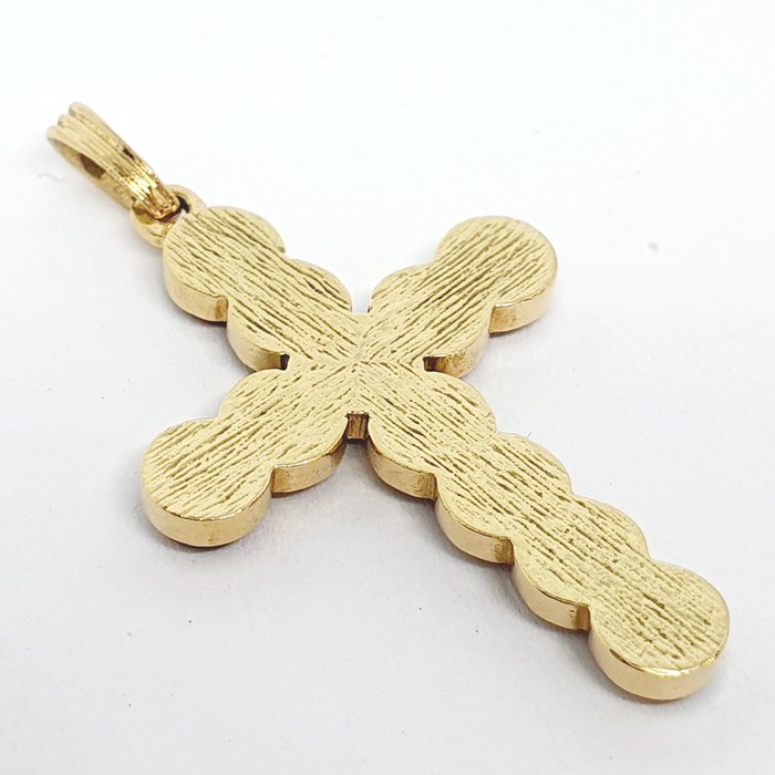 Kruisvormige hanger versierd met 11 tijgerogen van 4,00 mm en 0,20 ct in 18 kt geelgoud.