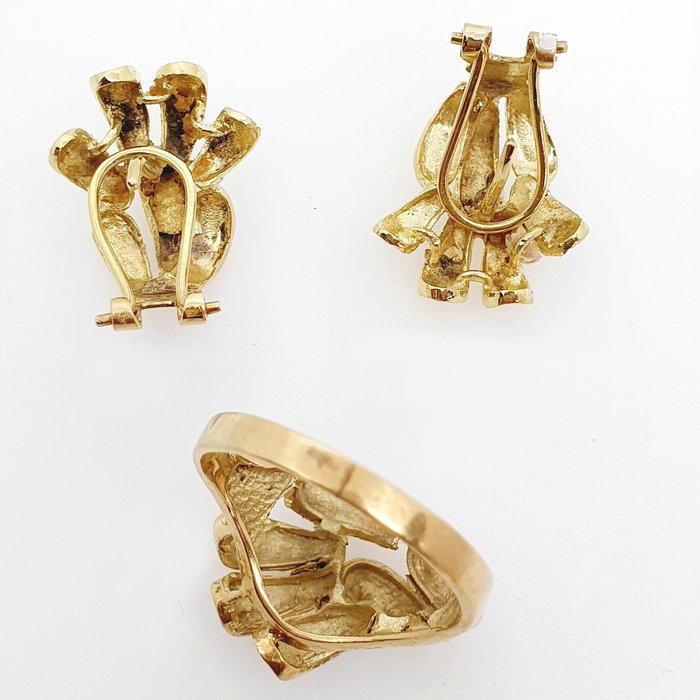 18k geelgouden ring en oorbellen
