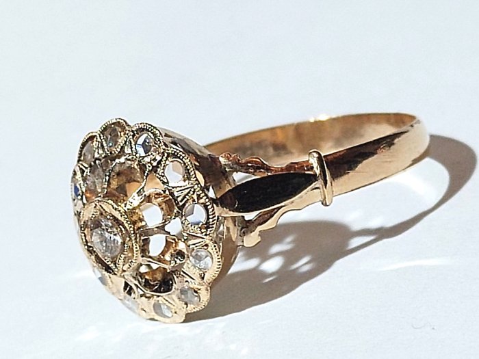 Oude diamanten ring gezet in 18 kt geelgoud. zonder stoot Getest door professionals met toetssteenzuur.