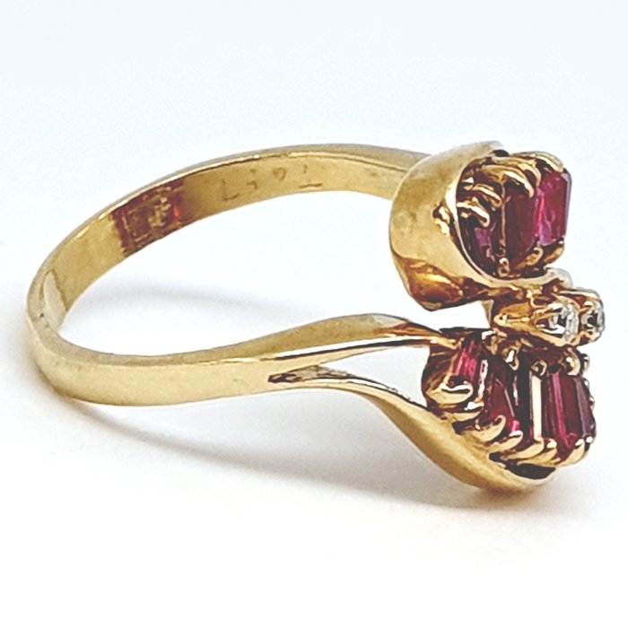 met 12 robijnen, bagette geslepen van 4,0 mm en gewicht ca. 0.16 wat een totaal maakt van 1.92ct.