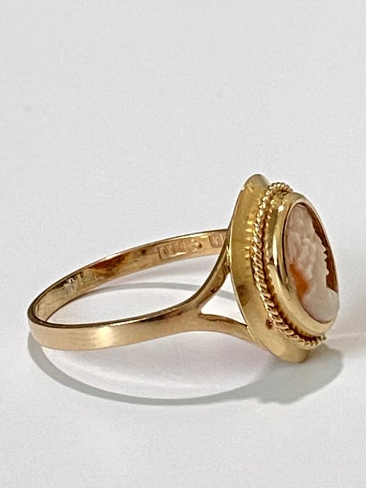 Ring in geel goud 18 kt, met camee. Wordt geleverd in een zwarte geschenkdoos.