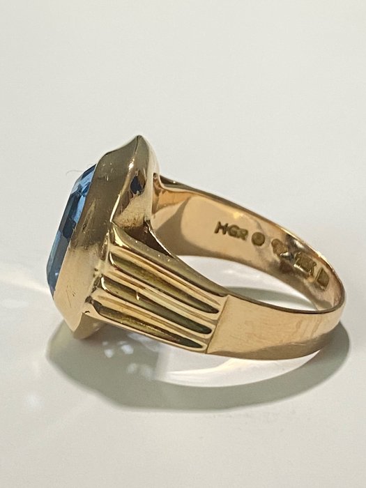 Ring in geel goud 18 kt. met een facet geslepen lichtblauwe Spinel. 6,00 ct.