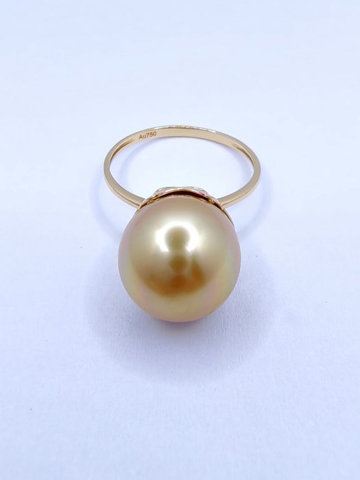 18K geelgouden gekweekte gouden zuidzee parelring.