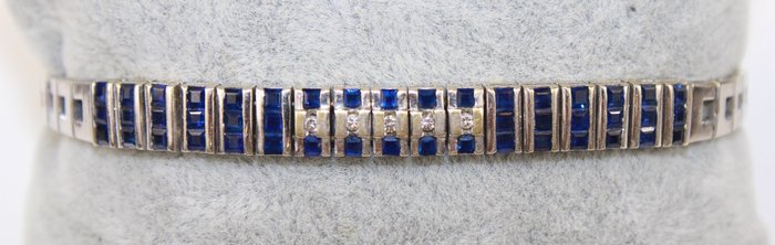 Zeer mooie 18K witgouden armband samengesteld uit saffieren en diamanten
