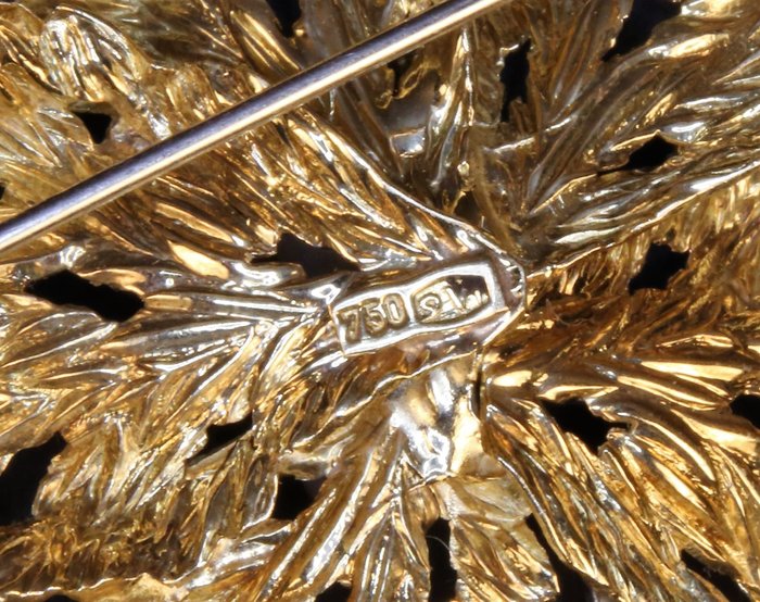 Hier heb ik een zeer filigraan broche gemaakt van 750 goud voor je.