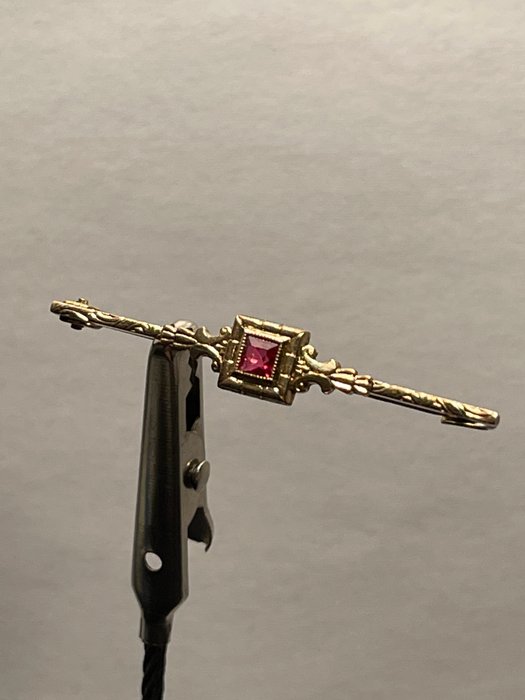 Vintage gouden 18k broche met robijn
