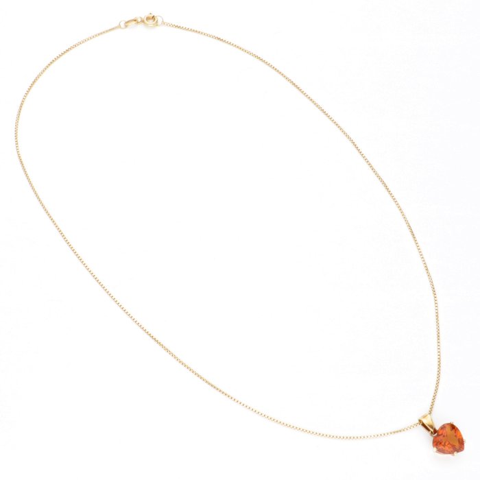 Geelgouden Venetiaan schakel collier, het collier is voorzien van ene hanger bezet met een gefacetteerde citrien van ca. 1.55 ct.