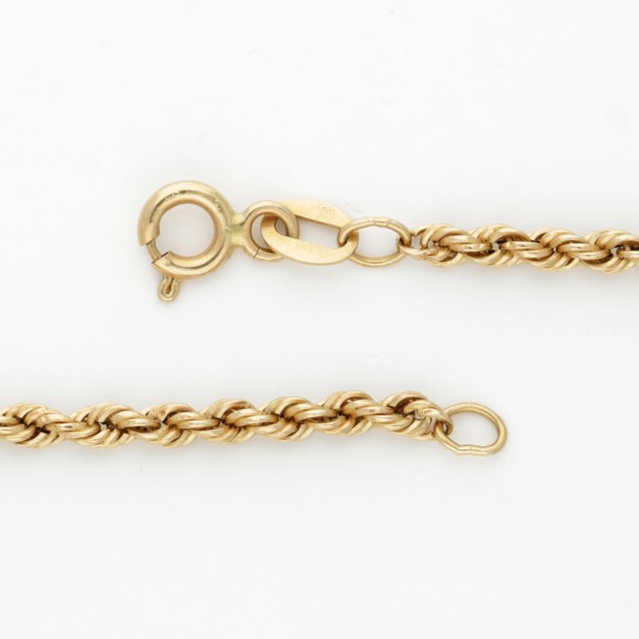 Geelgouden koordschakel collier voorzien van een schakelbreedte van ca. 2 mm. Het collier is vormgegeven in een tijdloos design.