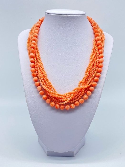 Torre Del Greco meerstrengs koraal collier uit de jaren 90.