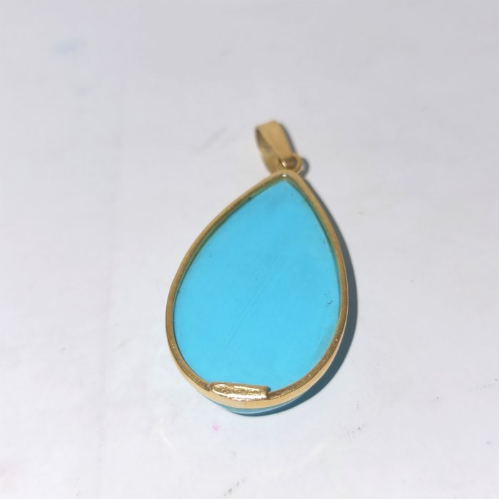 Paar oorbellen en hanger in 750 goud en turkoois.