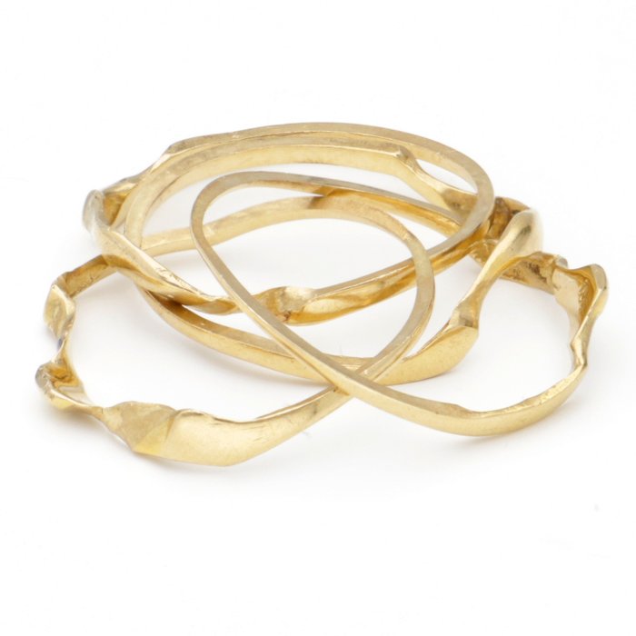 18 Karaat geelgouden puzzel ring, de ring bestaat uit 4 ringen welke 1 geheel kunnen vormen. De ringen hebben elk een breedte van ca. 1.20 mm.