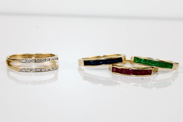 Zeer mooie set van 4 ringen in 18K geelgoud bestaande uit: