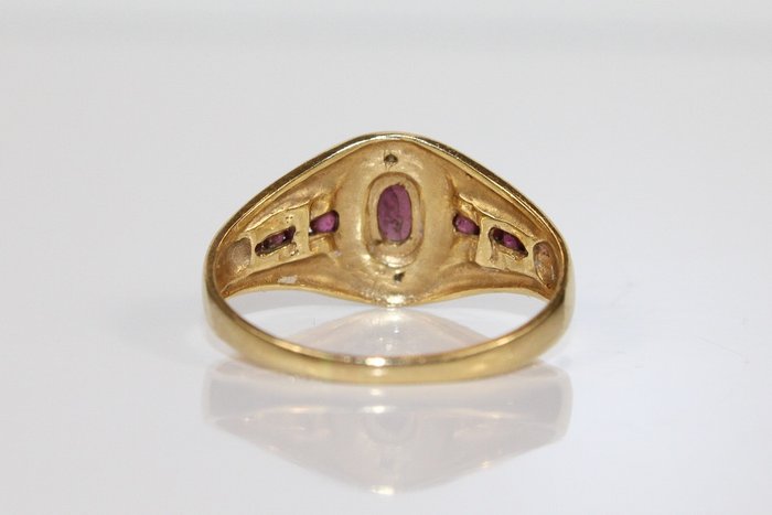 Versierd met een centraal ovaal rhodoliet en omgeven door 8 ronde rhodolieten "4 aan elk uiteinde"