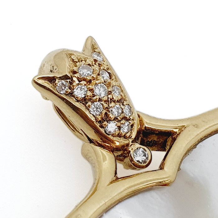 18kt geelgouden hanger met parelmoer en parelcreatie. Parelmoer geschat gewicht: 16 g. Goud geschat gewicht: 28,47 g.
